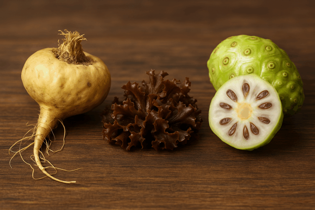 - Morinda Noni – supporta metabolismo e tono mentale.